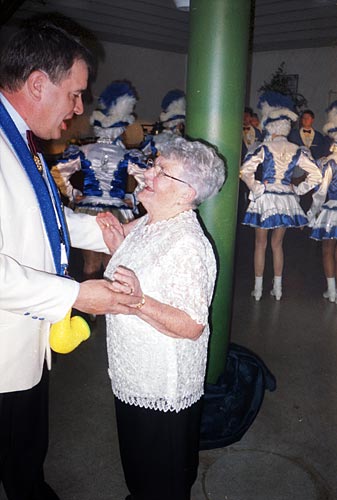 Sitzungspräsident, Bodo Ehrhardt, gratuliert im Namen aller FKK-Mit- glieder, unserem ältesten Vereinsmitglied, Oma Hertha, zum 90. Geburtstag.